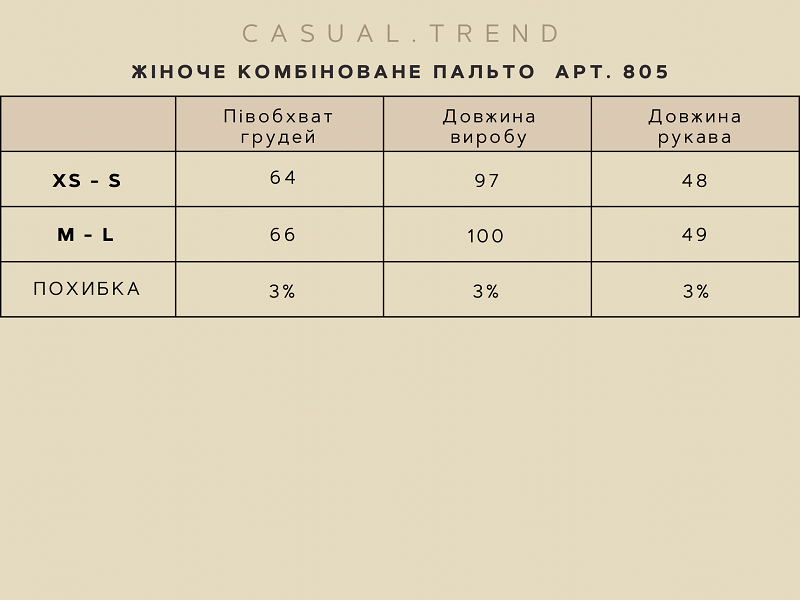 Жіноче комбіноване пальто від casual.trend - це ексклюзивний вибір для модних жінок. Його високоякісні матеріали забезпечують тепло та комфорт у будь-яку погоду. Це пальто - втілення елегантності, зручності та стилю. Його універсальний дизайн дозволяє легко поєднувати з різними образами, додаючи шарму навіть найпростішому вбранню. Створіть неповторний образ із нашим жіночим пальто!